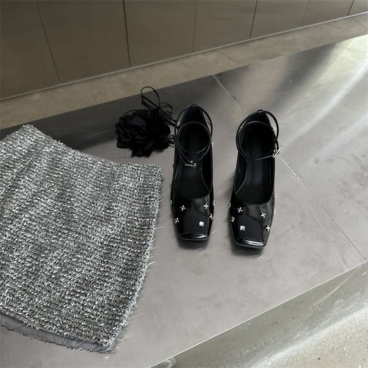 Square Ankle Toe Heel Jane Mary High Strap Shoes