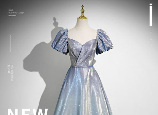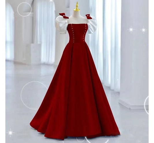 A-Line Gown Two Evening Puff-Sleeve Bow Tone