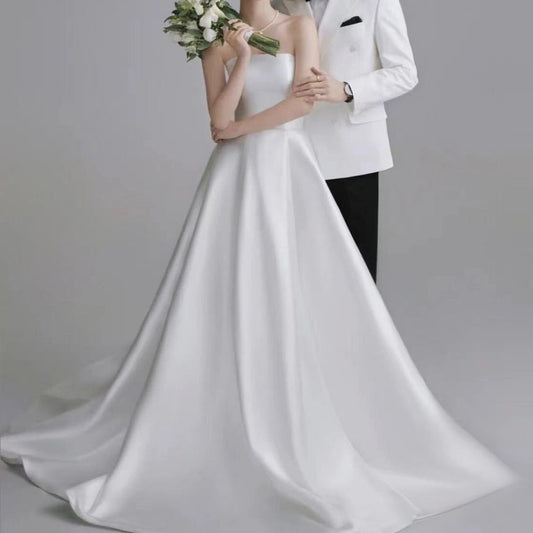 A-Line V-Neck Strap Gown Spaghetti Wedding Plain