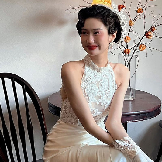 A-Line V-Neck Dress Plain Trim Maxi Halter Ruffle