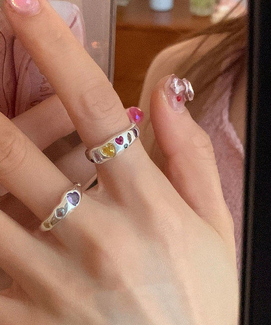 Boutique Zircon Rainbow Piece Steel Love Rings Set Stainless Asymmetrical Three