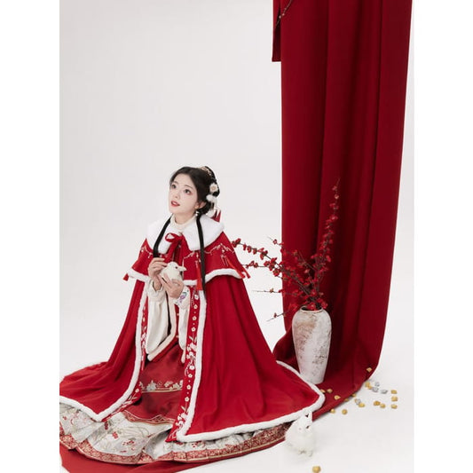 Traditional Chinese Embroidered Open Front Cape / High Waist Maxi A-Line Skirt / Long-Sleeve Blouse / Set