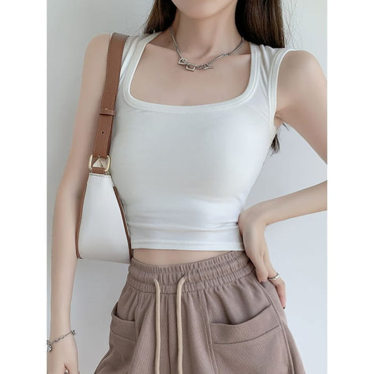 U-Neck Asymmetrical Top Plain Sleeveless