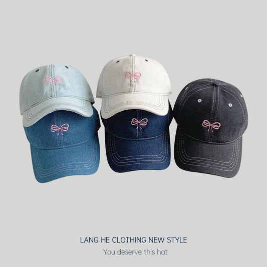 Bow Embroidered Denim Baseball Cap