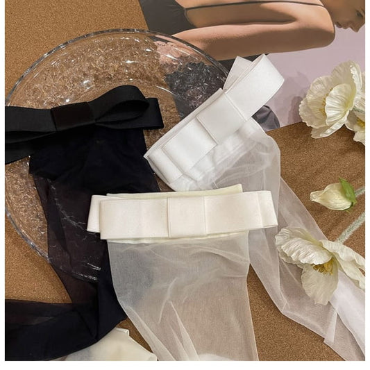 Bow Panel Plain Off-Shoulder Mermaid Mesh Gown Evening