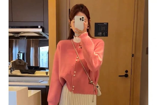 Cardigan Crop Lace Plain Sheer One-Buttoned Trim V-Neck