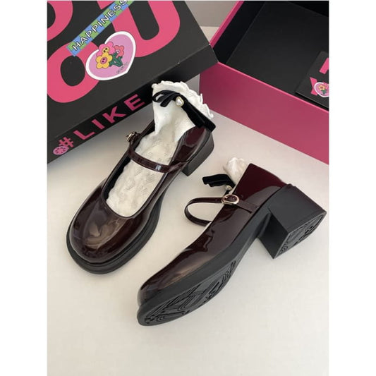 Chunky Heel Plain Patent Leather Mary Jane Pumps