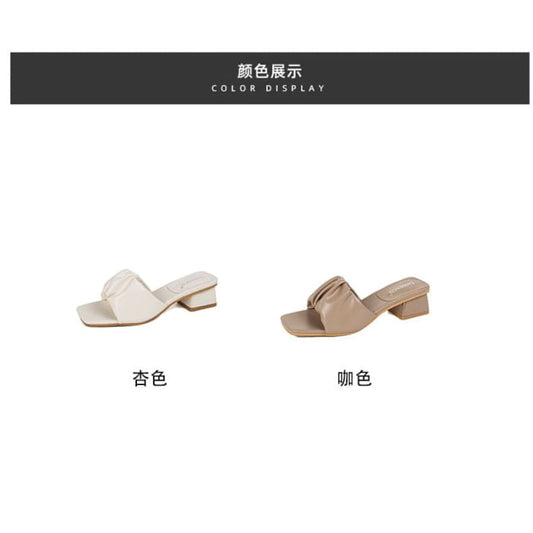 Chunky Heel Square Toe Plain Ruched Faux Leather Sandals