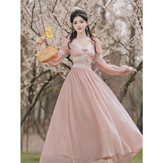 Cinched Sleeve Square Neck Plain Ruffle Tie-Up High-Low A-Line Dress