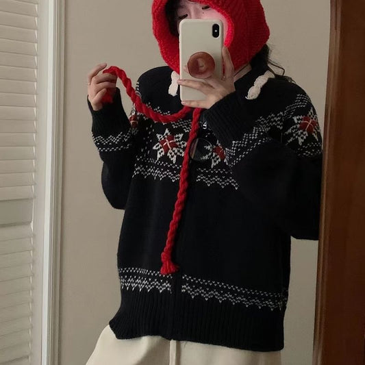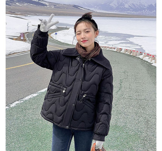 Collar Plain Contrast Stitching Ribbed Cardigan