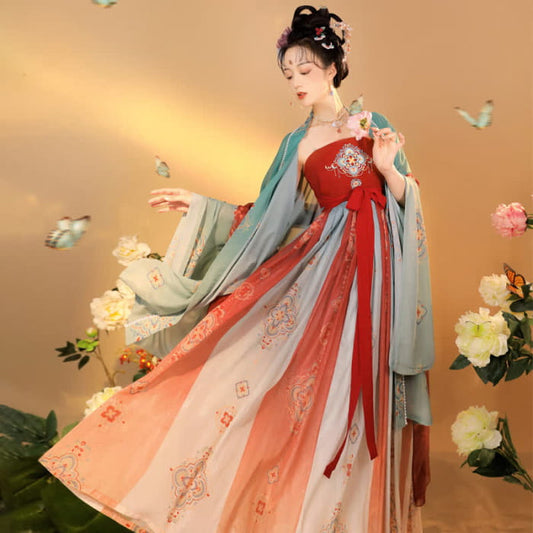 Colorful Embroidery Cardigan Sweater Slip Dress Set