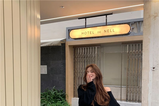 Contrast Pullover Waist Off-Shoulder Trim Plain / Drawstring