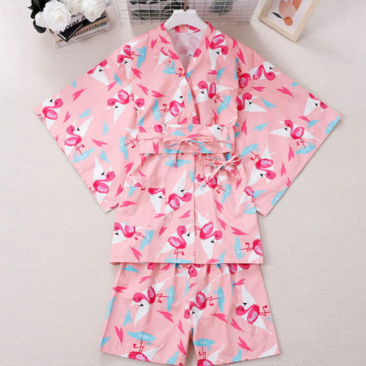 Cotton Kimono Kitty Print Couple Outfit Pajamas