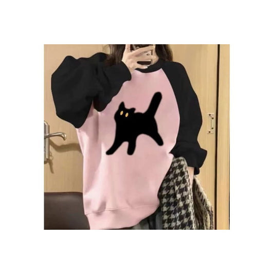 Crew Neck Cat Print Sweatshirt