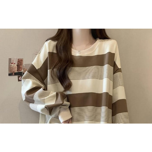 Crewneck Printed Plaid Color-Block Oversize Sweater