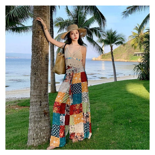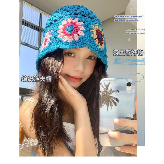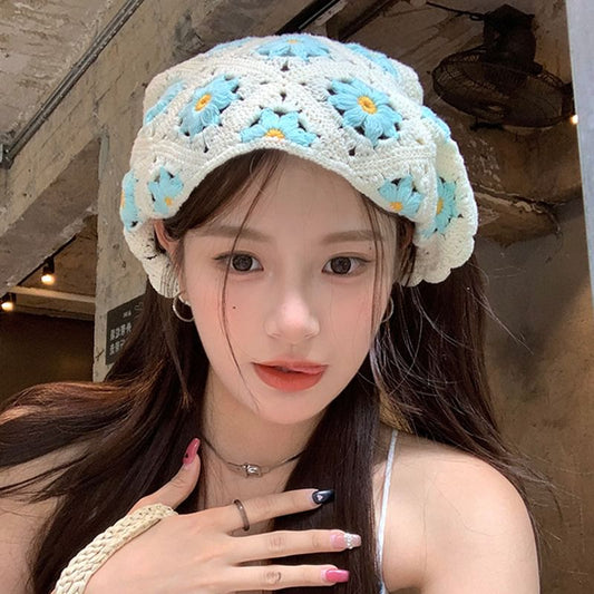 Crochet Long-Sleeve Panel Knit Blouse V-Neck