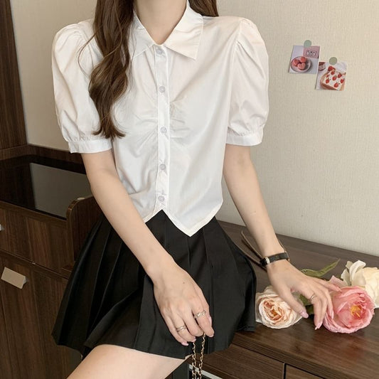 Crop Short-Sleeve Plain Shirt