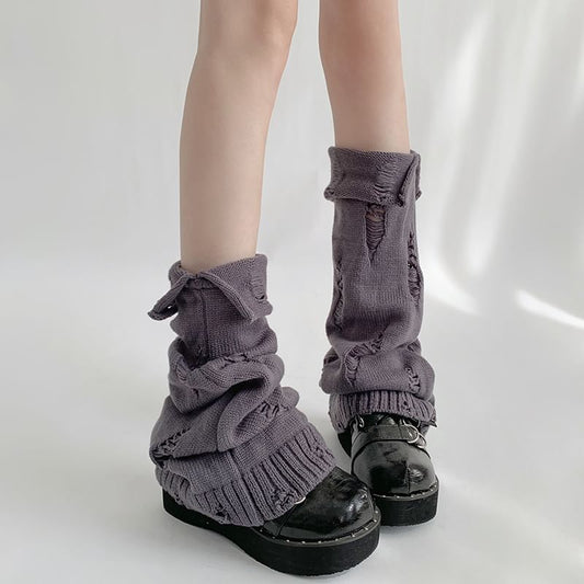 Distressed Long Neck Top Sleeve Crew Knit Plain