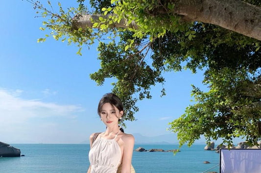 Dress Dye Ruched Back Spaghetti Tie V-Neck Strap Maxi Open A-Line
