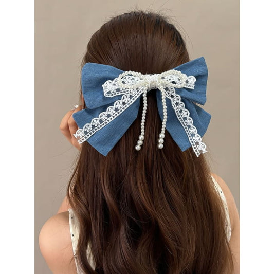 Faux Pearl Bow Accent Hair Claw
