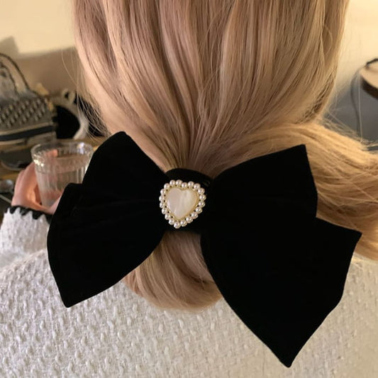 Faux Pearl Heart Bow Hair Clip