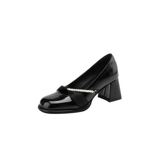 Faux Pearl Patent Leather Block Heel Pumps