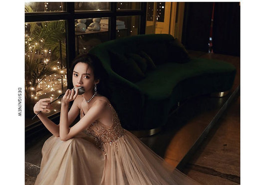 Floral A-Line Evening Gown Sequined Strap Spaghetti