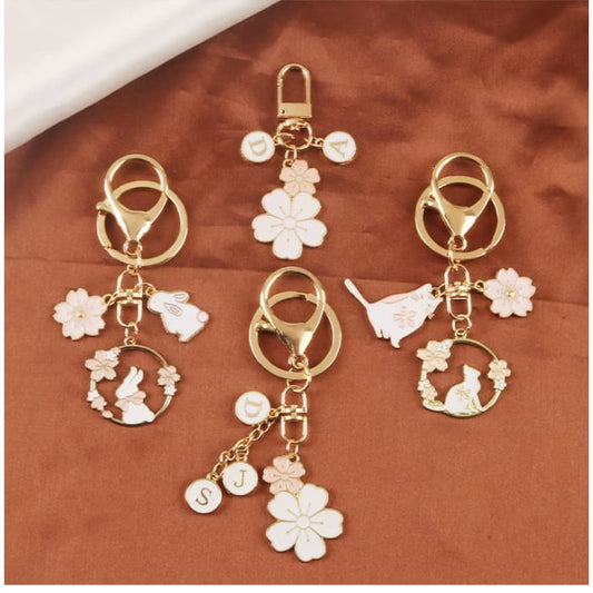 Floral / Rabbit Alloy Keyring (Various Designs)