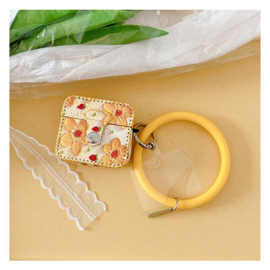 Flower Print Faux Leather AirPods Earphone Case Skin