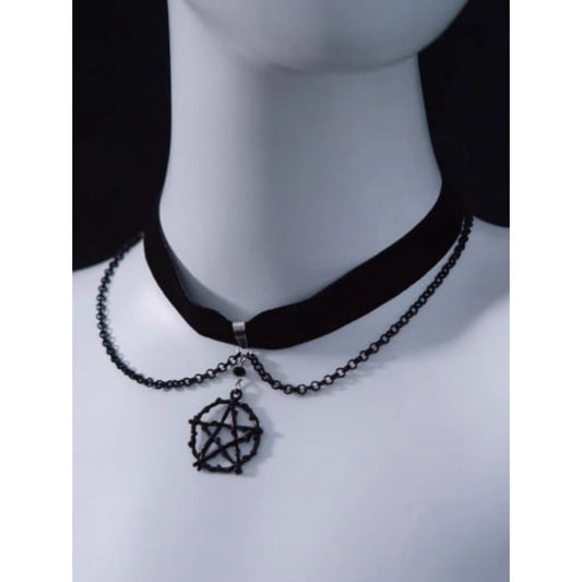 Gothic Pentagram Black Velvet Choker with Chains