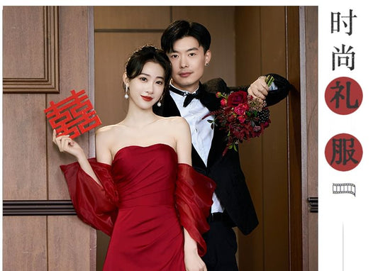 Gown Evening Mesh Off Shoulder Trained A-Line