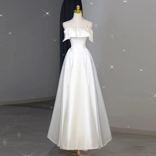 Gown Wedding Spaghetti Strap Ruffle Plain A-Line