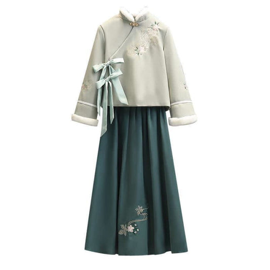 Green Floral Patterned Cheongsam