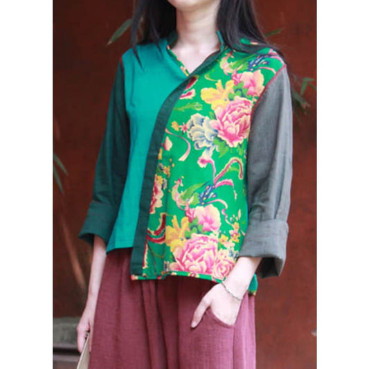 Green Print Asymmetrical Shirt Long Sleeve VB1023