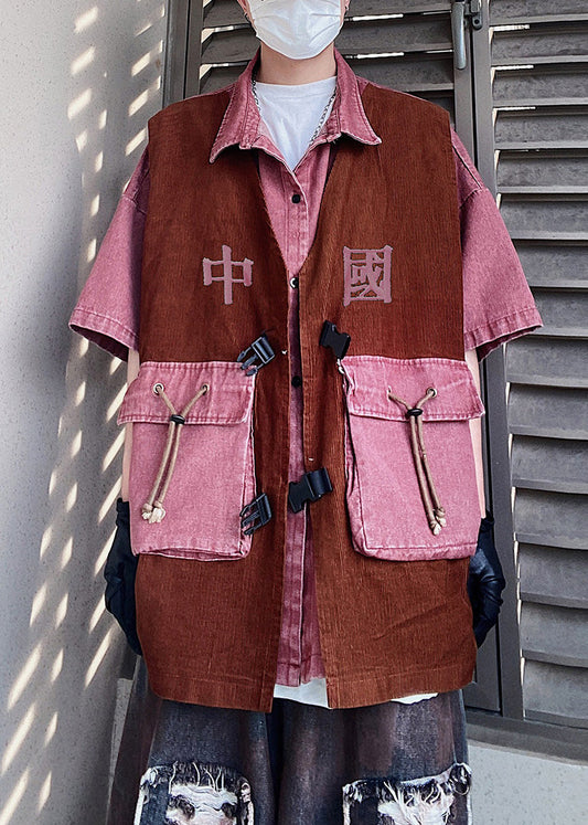 Half Shirts Men Oversized Patchwork Pieces Sleeve False Two Pink Vintage