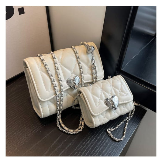 Heart Buckled Quilted Flap Crossbody Bag (Various Designs)