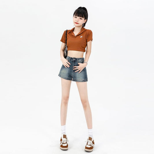High Pants Mock Long-Sleeve / Flared Crew Two-Piece Plain T-Shirt Neck Waist