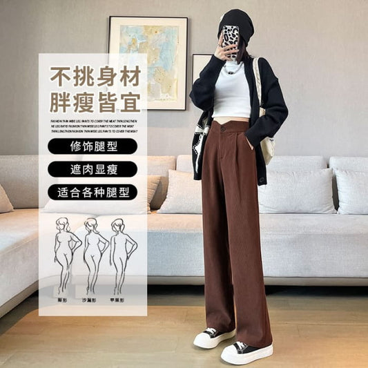 High Rise Plain Corduroy Wide Leg Dress Pants