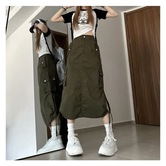 High Rise Plain Drawstring Midi