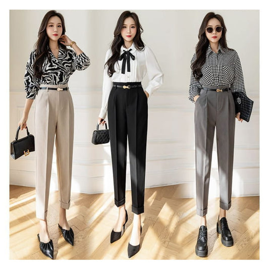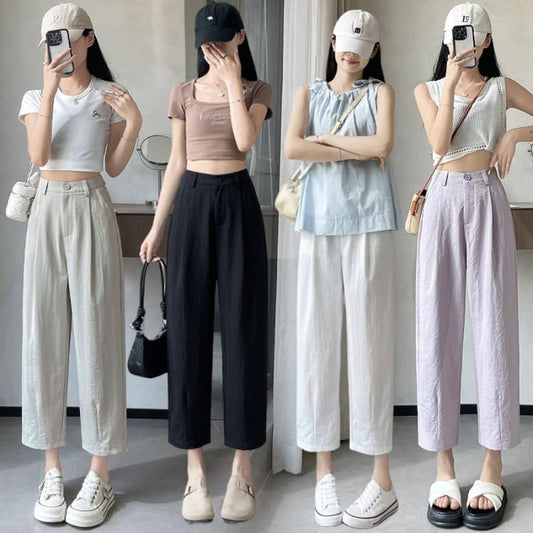High Rise Plain Cropped Tapered Slacks