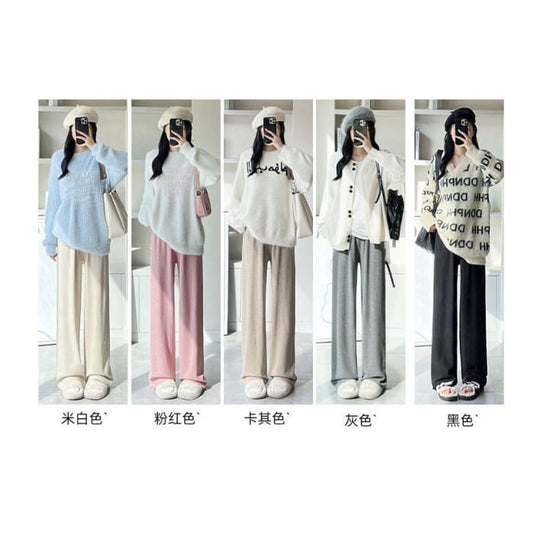 High Rise Wide Leg Plain Knit Sweatpants