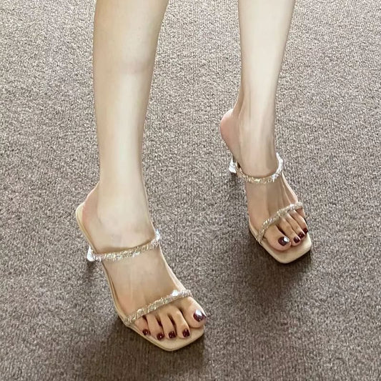 High Sandals Heel Rhinestone Slide
