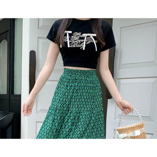 High Tiered Skirt Mini Waist Panel Bow A-Line Lace Dotted