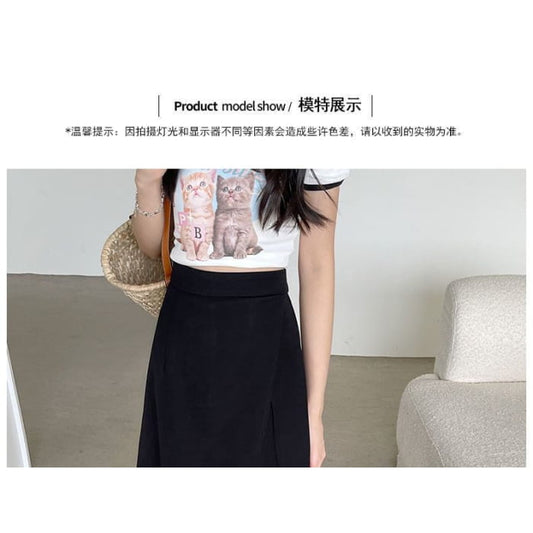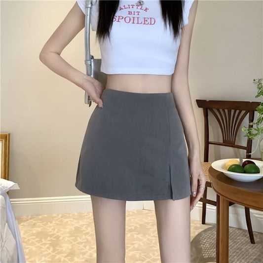 High Waist Plain Pleated Knit Mini A-Line Skirt