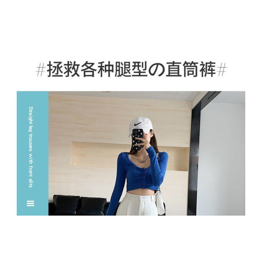 High Waist Plain Straight-Fit Wide-Leg Jeans
