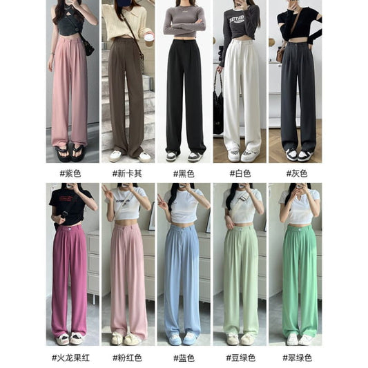 High Waist Pleated Loose Cutting Wide Leg Pants