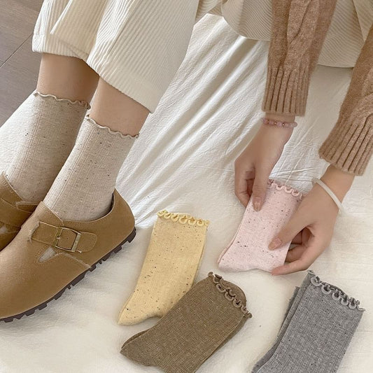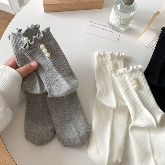 Lettuce Edge Faux Pearl Ribbed Socks / Set
