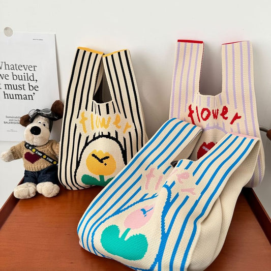 Bag Tote Retro Decorated Yellow Tassel Silk Print