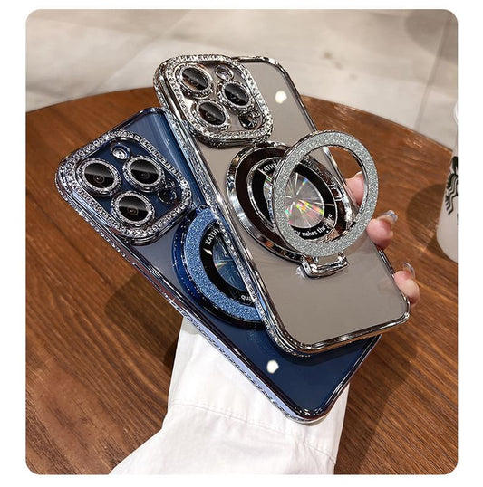 MagSafe) (Compatible Magnetic Phone Transparent Case Stand with Rhinestone