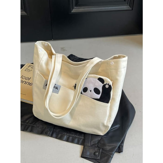 Panda Applique Canvas Tote Bag